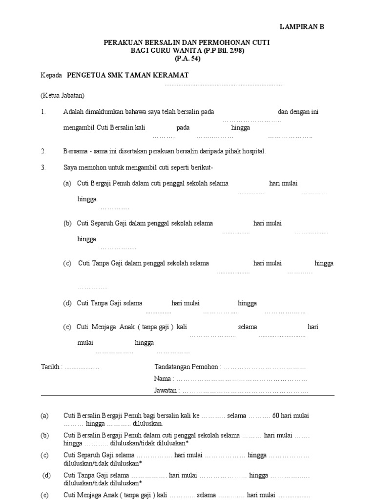 Related keywords suggestions surat permohonan long tail. Cuti tanpa gaji lazimnya merupakan cuti yang diminta oleh pekerja atau cuti akibat salah laku seorang pekerja. (b) telah menunjukkan prestasi kerja yang baik; Prosedur apply cuti belajar separuh gaji bagi kakitangan. Untuk itu kami akan memberikan jawaban dan ketentuannya sendiri perusahaan wajib membayarkan gaji selama empat bulan pertama secara penuh,dan empat bulan.